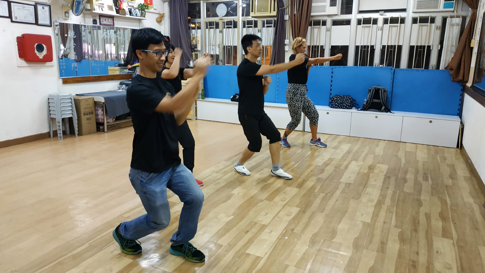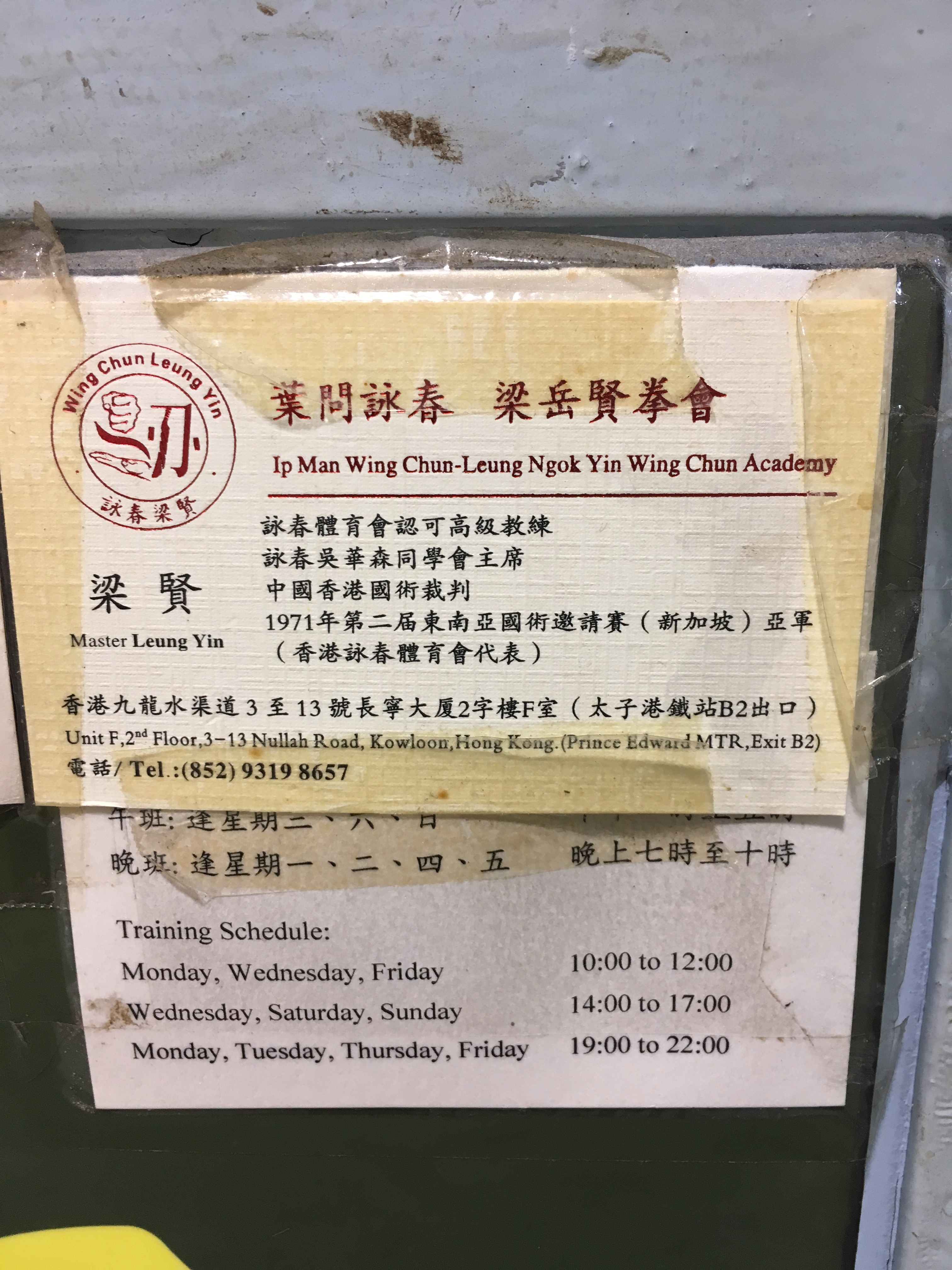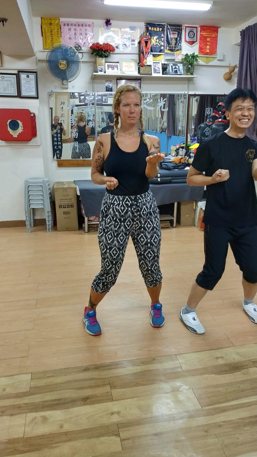 I wasn’t sure what to do that night, but I realised I was staying right next to the Wing Chun Centre (Ving Tsun Athletic Association) that my brother, and my friend used to train at, which was linked to Ip Man and I believe his sons used to teach there. I’d always wanted to take up a Martial Art (and did take up Muay Thai in Hong Kong) but I’d wanted to try Wing Chun, in all honesty because my brother used to do it. As a teenager I was a recipient of man, many one inch punches. Looking back, like with many things (skating, football, surfing) I don’t know why I just didn’t go with him – insecurity, being female, self doubt – But, it’s never too late – I started doing all these things in my 30s. After walking around and around the building, trying to find an entrance, which I remember doing decades before, I spoke to a security guard who told me the Sifu was out, but called him for me – and animatedly, told me to wait. Sifu showed up, huge smiles, and despite being unable to speak each others languages we managed to laugh, understand each other, and agree that I would turn up that night for the 7pm session. I was so nervous, and had no idea what to expect.