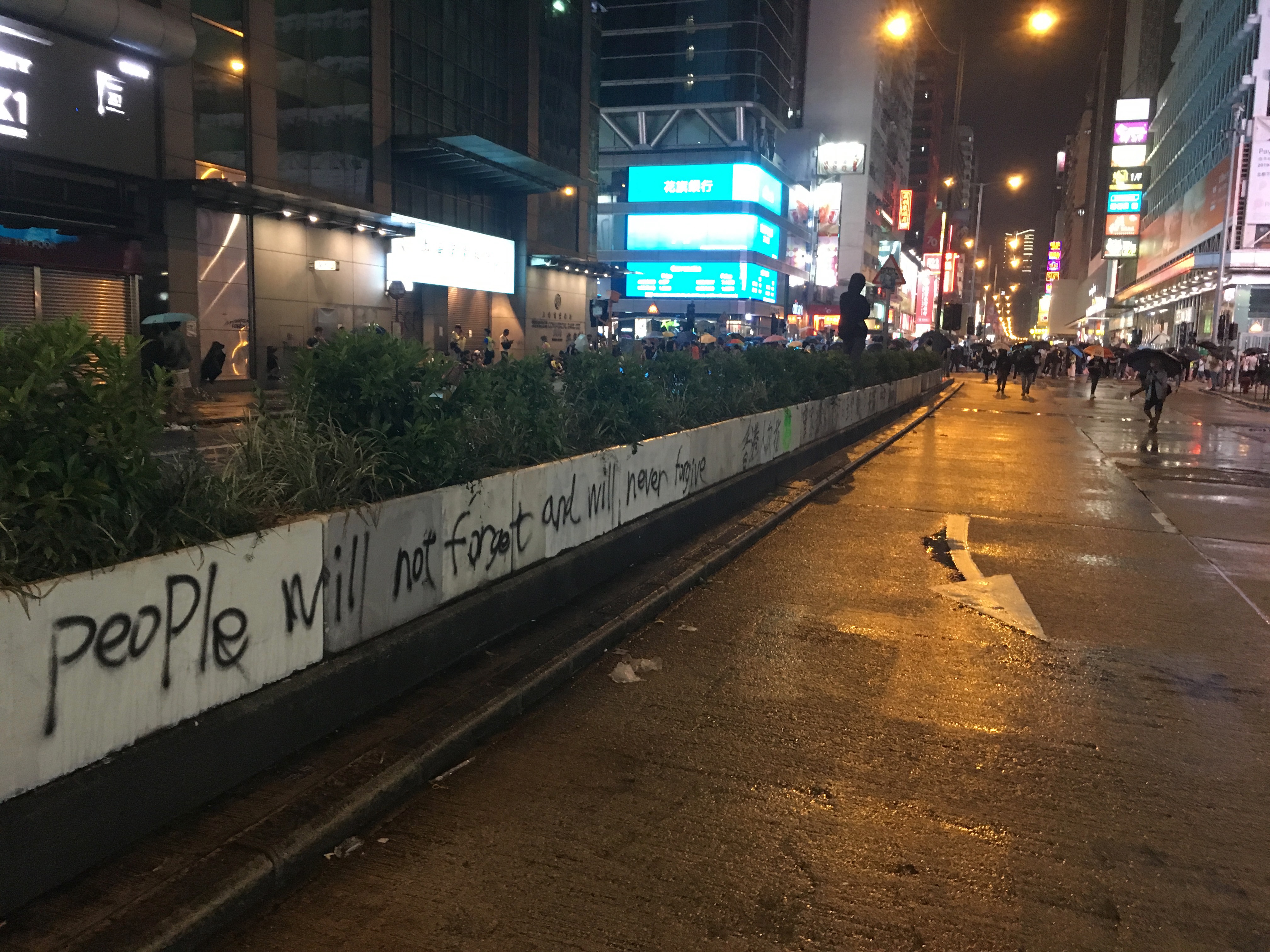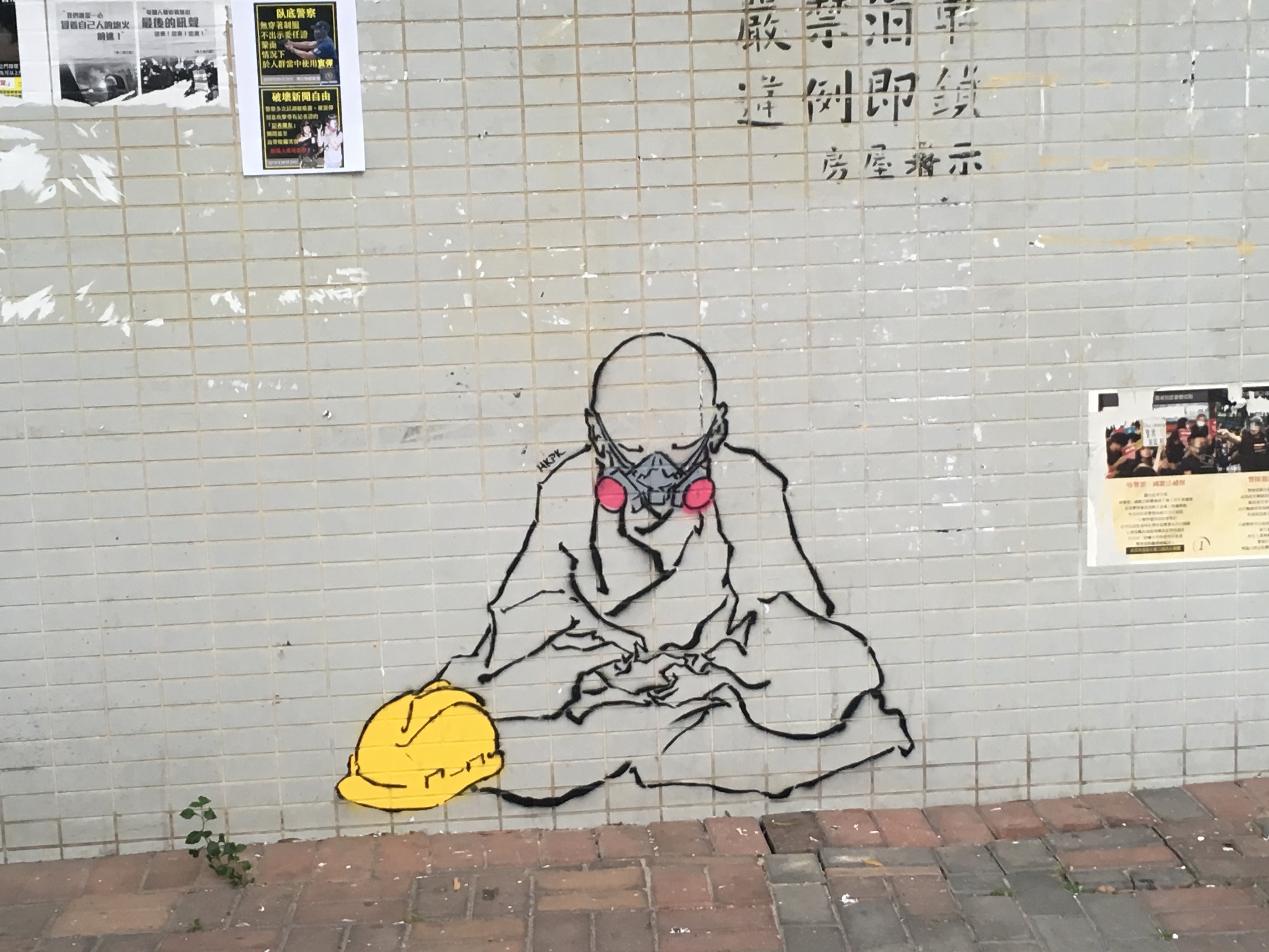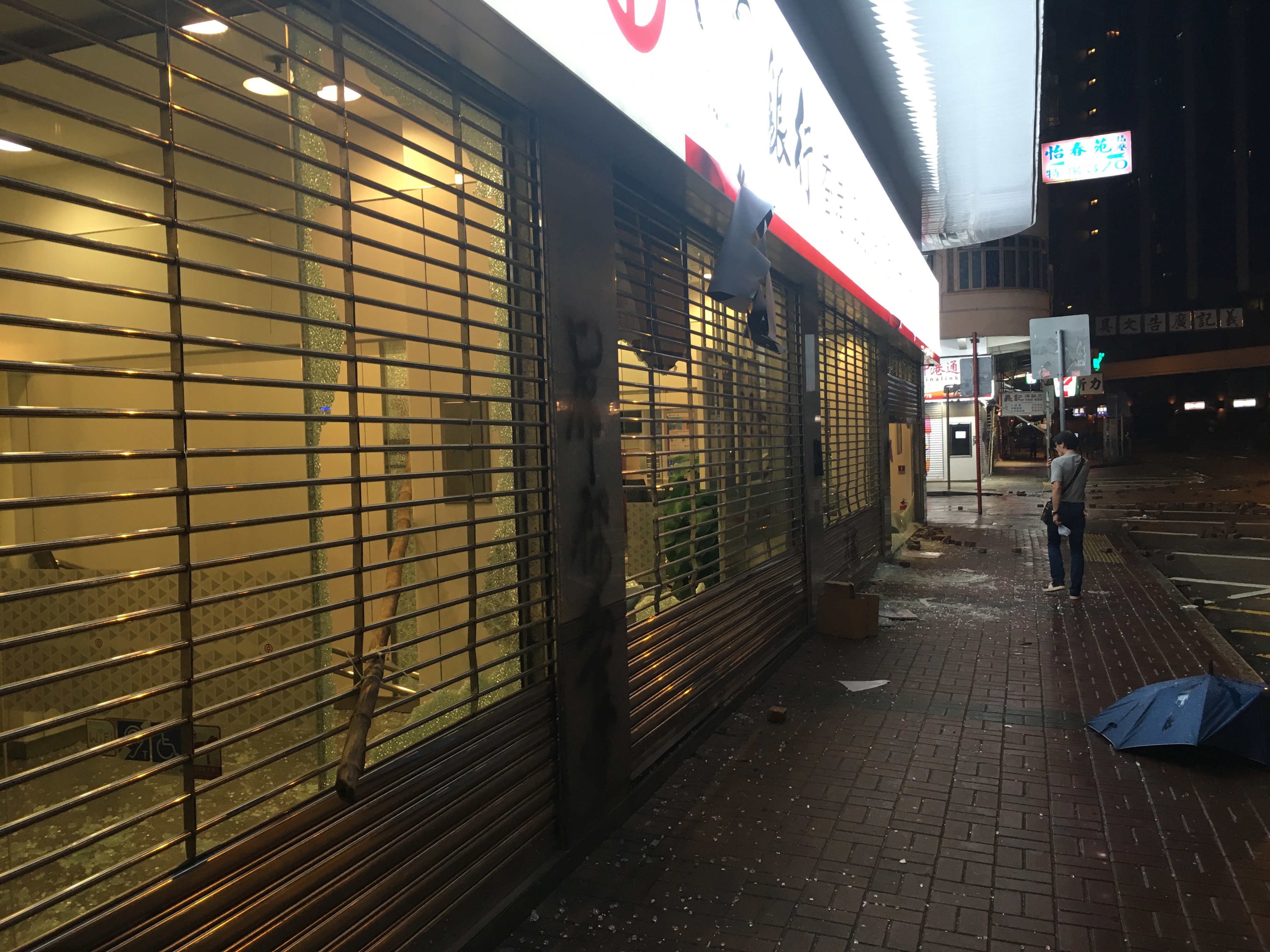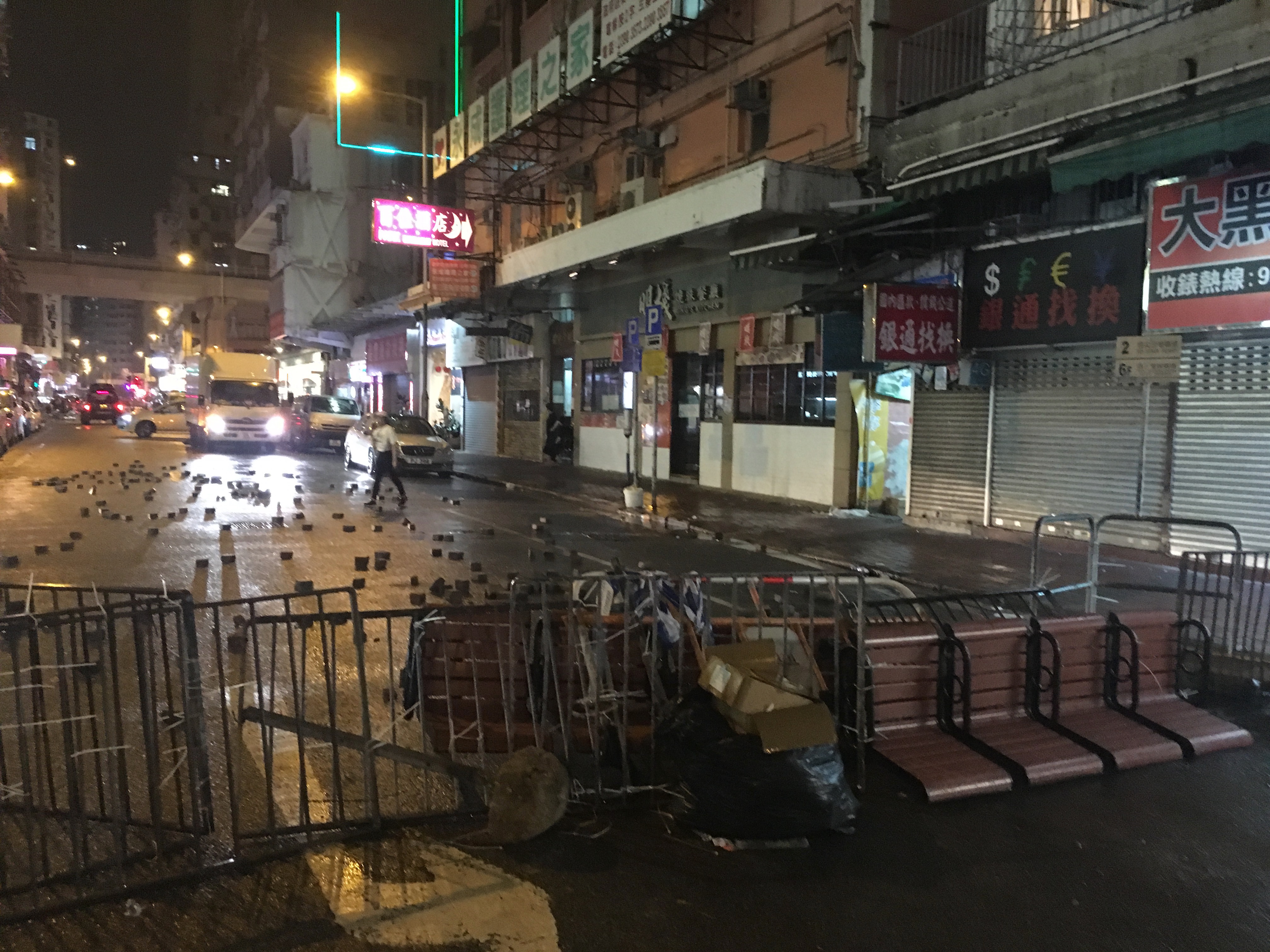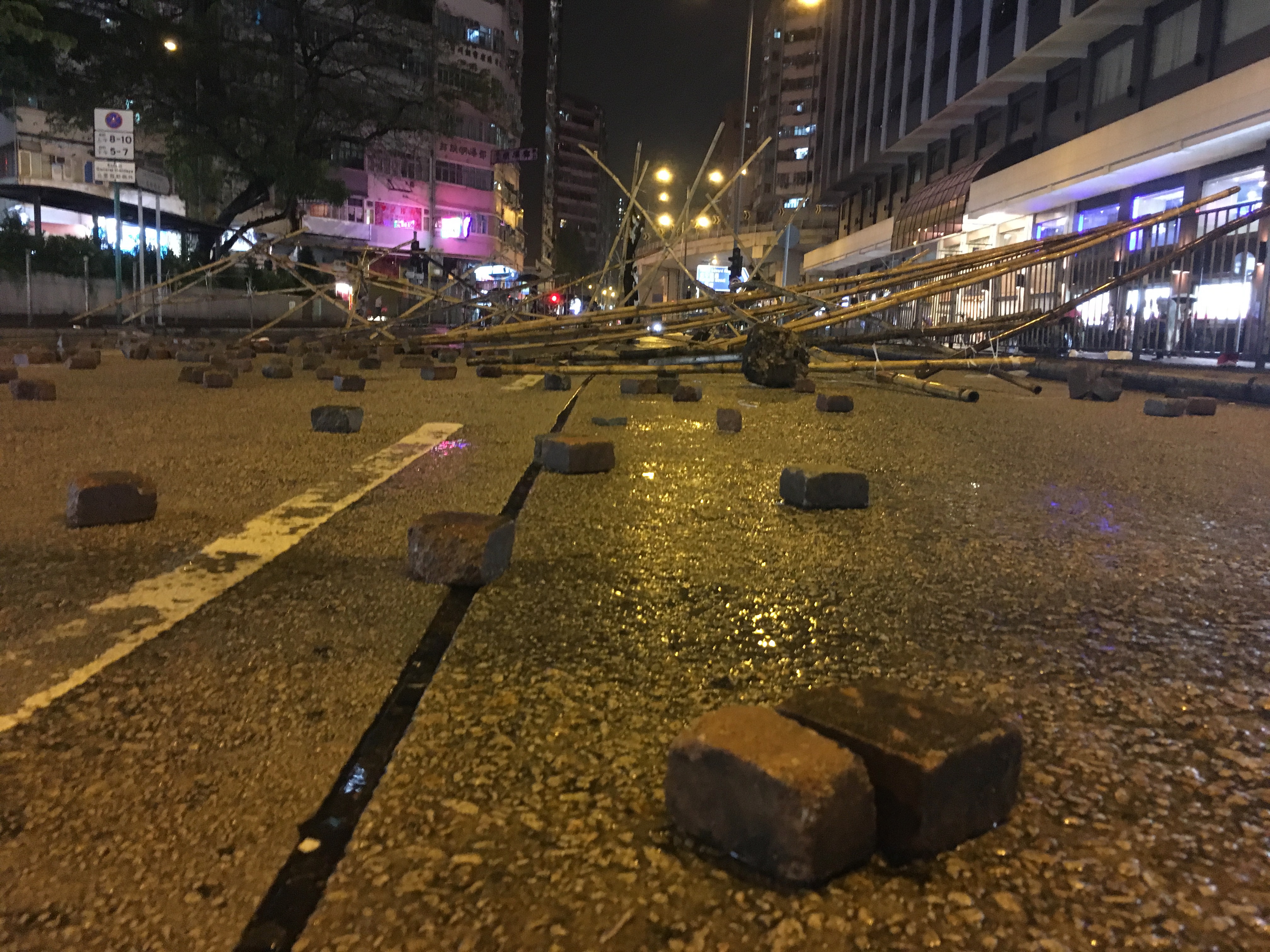 After dropping my bags off, I headed out to walk around, to be with people, to protest, to see what was happening, what had happened. I didn’t care about the property destruction. People are worth more than property. But it hurt seeing the destruction, not because I cared about the property or the companies, but it hurt seeing my city broken. I welled up reading the graffiti. I stared at the bricks all over the roads, looking like art installations. Barricades made of bamboo and of mental railings.