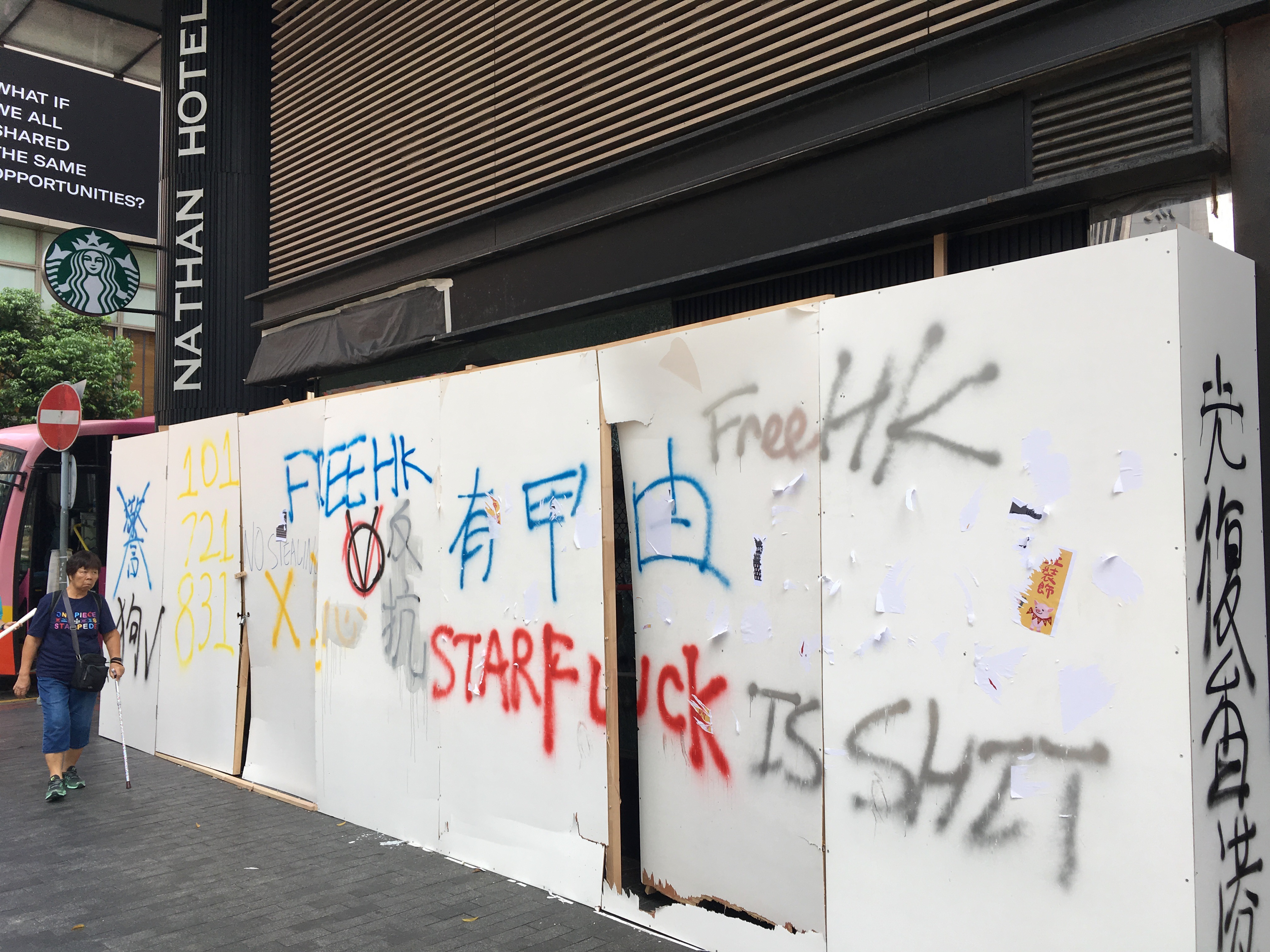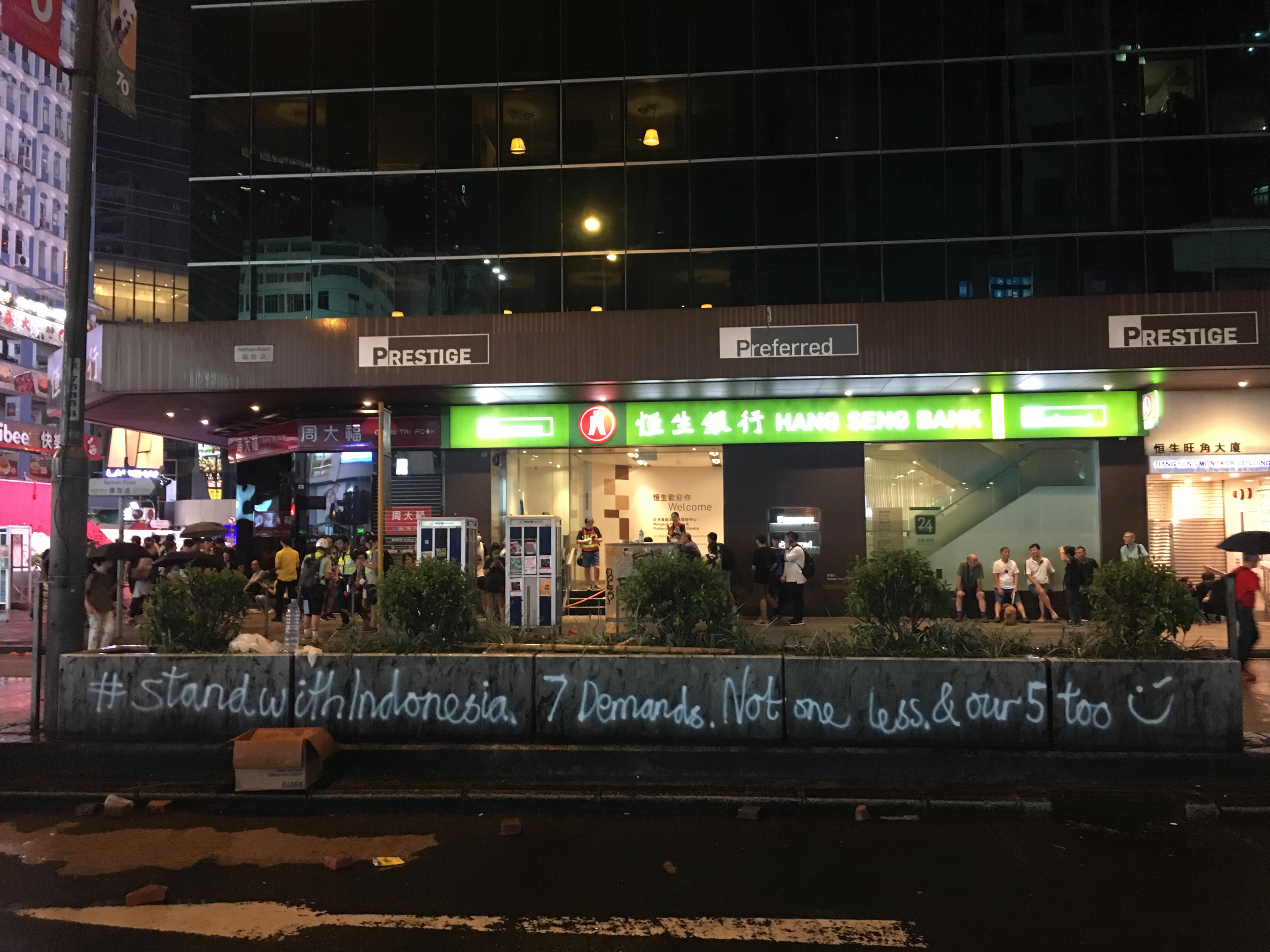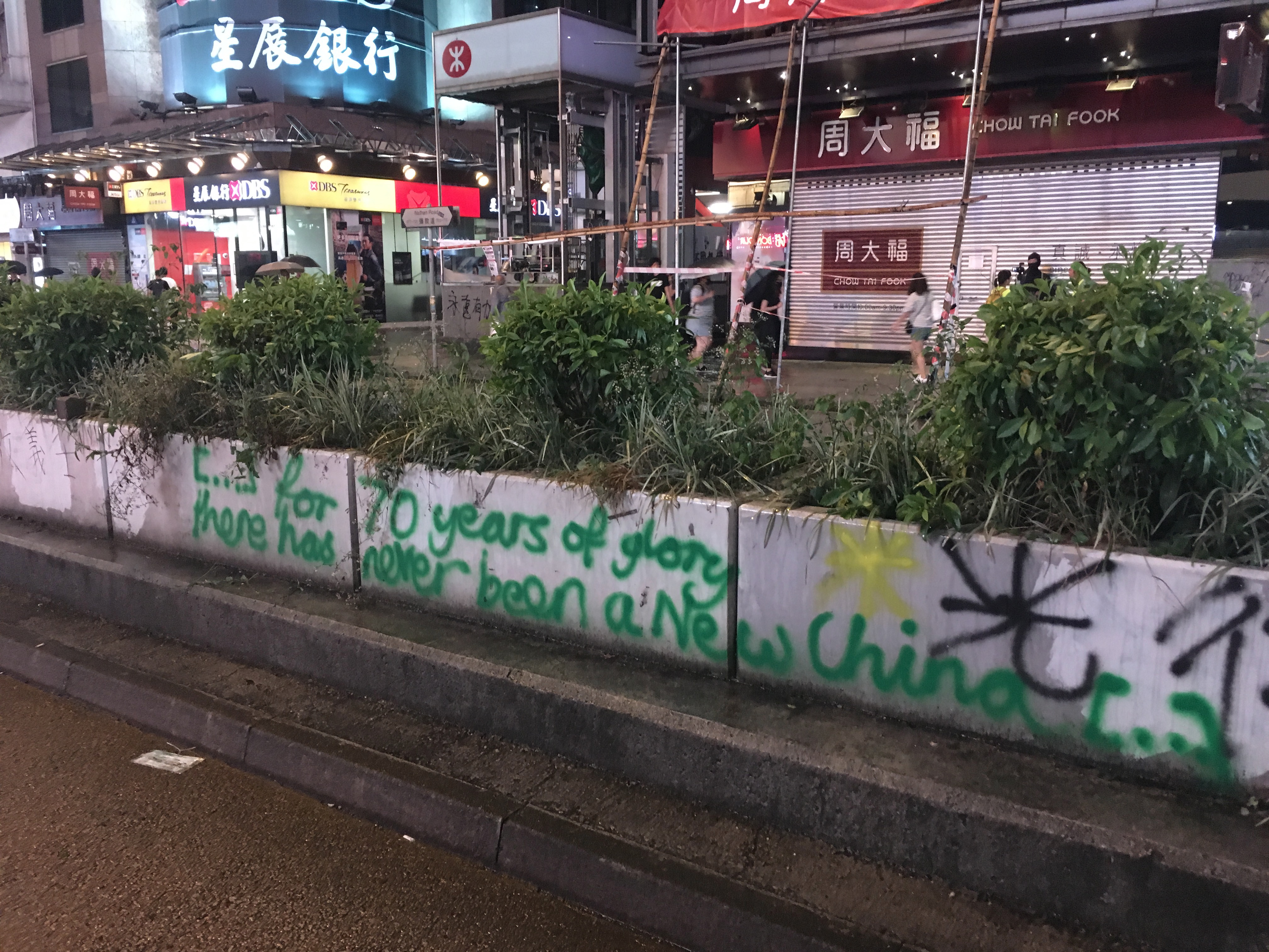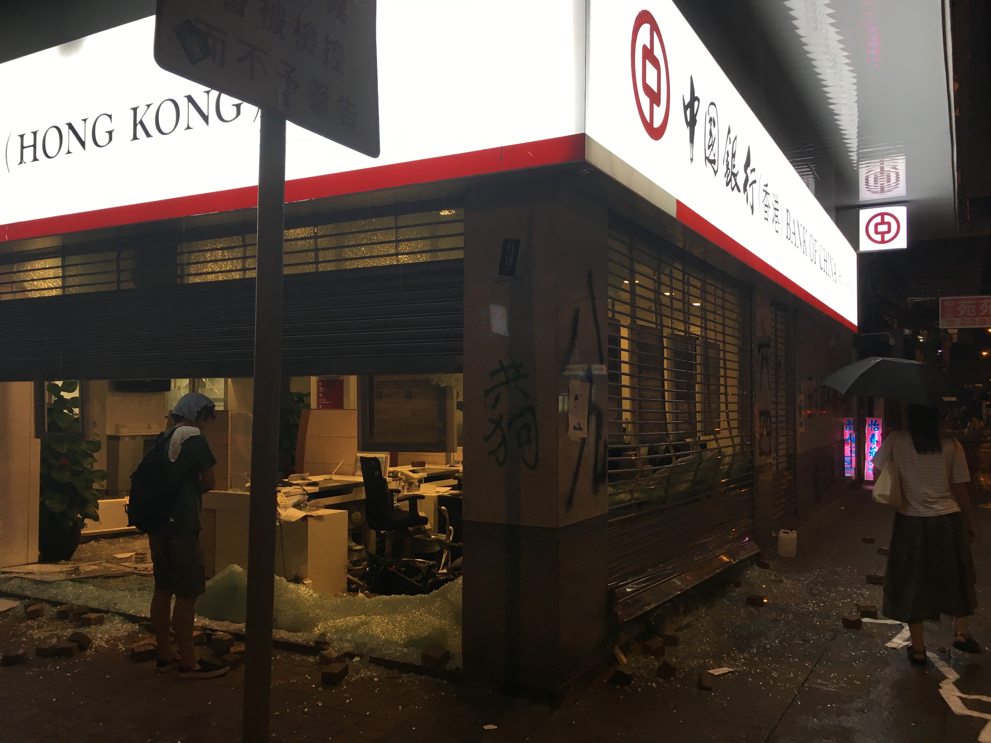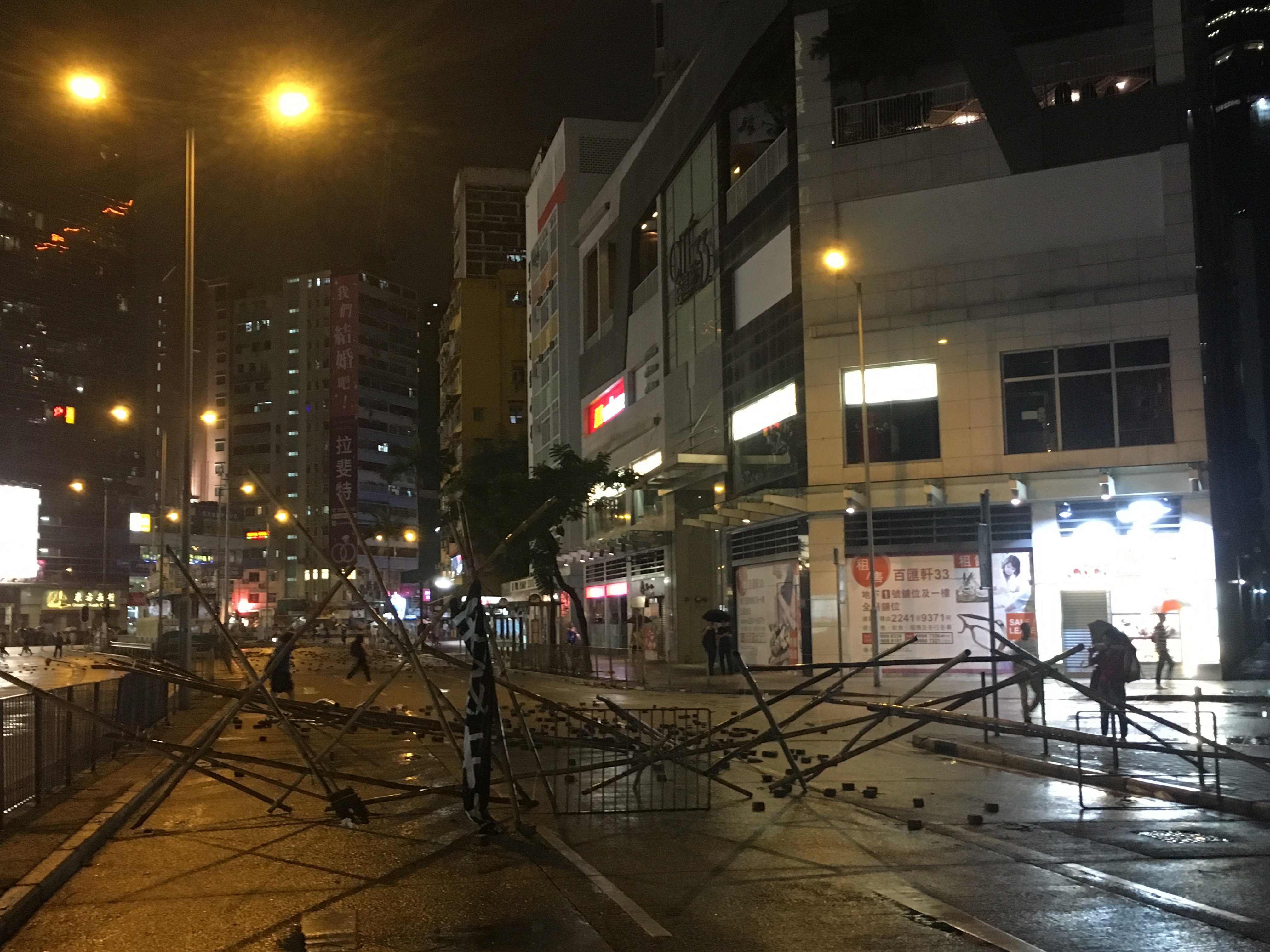 After dropping my bags off, I headed out to walk around, to be with people, to protest, to see what was happening, what had happened. I didn’t care about the property destruction. People are worth more than property. But it hurt seeing the destruction, not because I cared about the property or the companies, but it hurt seeing my city broken. I welled up reading the graffiti. I stared at the bricks all over the roads, looking like art installations. Barricades made of bamboo and of mental railings.