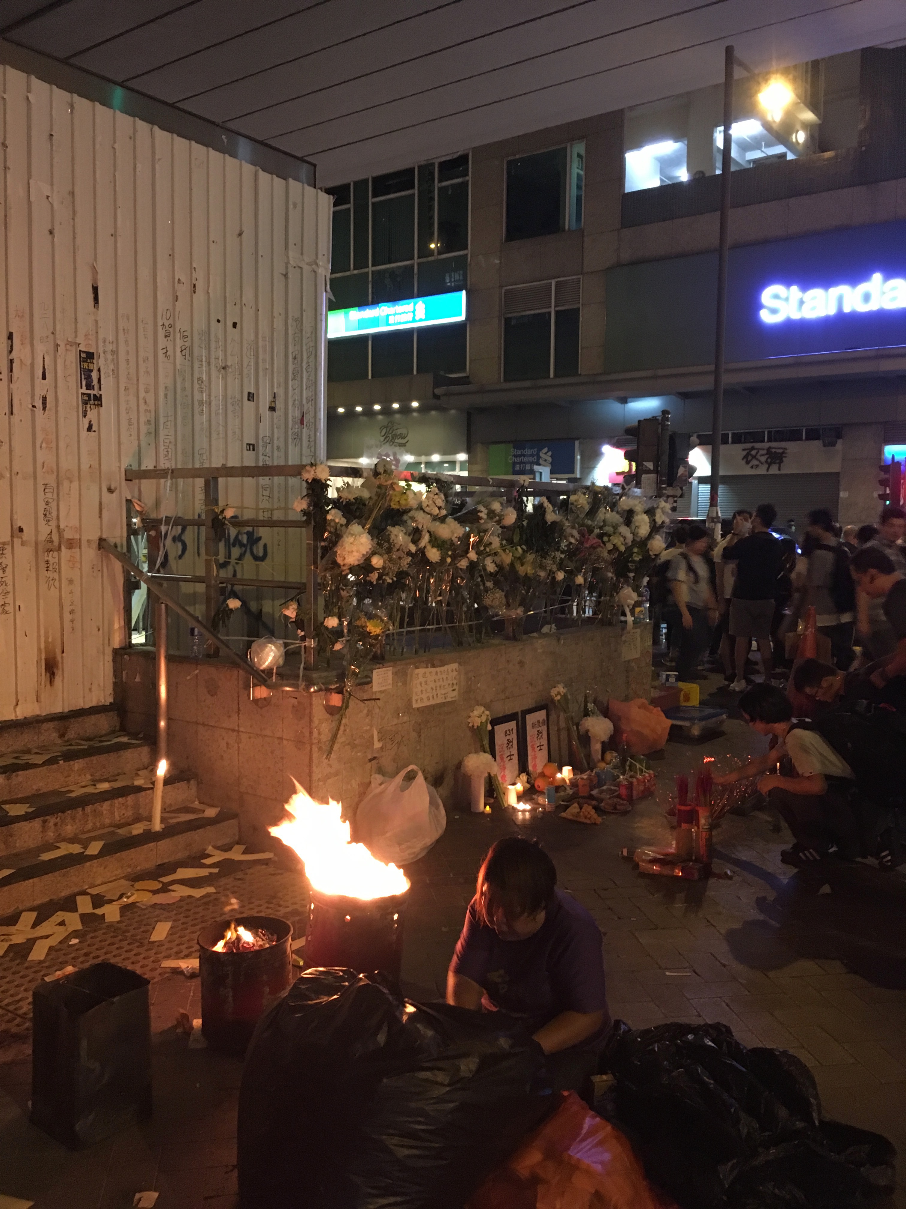Standing on the side of the road I had two interesting, but hugely contrasting conversations. Firstly I overheard an American expat talking with a German tourist.. I took a deep break and walked toward there. As a white, English speaking Hong Konger I always questioned my role in the protests, what was most useful, what would be most appropriate. Talking to white privileged patronising, ignorant and often racist (though they would never see themselves this way) people was one major role. I interrupted their talk and questioned their comments of the protesters not knowing what they wanted, how naive they were, how the Chinese, the Asians, are not built for, and don’t want democracy. I argued that their, our, demands were pretty specific. How the ‘Founder of Modern China’ Sun Yat-sen, believed in, and wanted democracy for China. How Tiananmen Square was not so long ago, how many people in Mainland China are imprisoned for speaking out for Democracy, for Human Rights. How the existence of the pro-democracy political parties, how the millions of people out on the street, of all ages – with differing socio-economic backgrounds, shows what they were saying is bullshit. They talked about the effect on the economy. Always straight back to money. The American said if it continued like this – he would move to Shenzhen, where he could continue his life peacefully, doing as he pleased, using an illegal VPN of course.